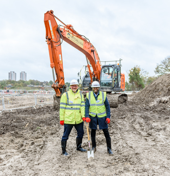 Cllr Anthony Okereke, Leader of Royal Borough of Greenwich, joined Lovell Regional Managing Director Mick Laws to officially start construction.